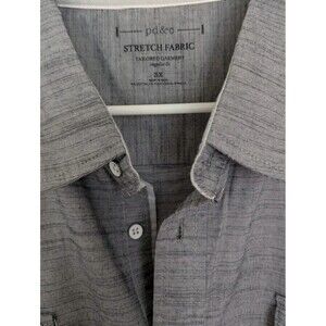 PD & Co Dark Gray Woven Button Down Shirt Mens 3XL Cotton Blend Short Sleeve. Condition is Pre-owned. Shipped with USPS Ground Advantage.