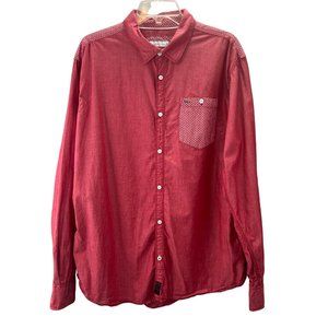 PD&C Chambray Red Button Up Shirt size XL Diamond Print Pocket Long Sleeve
