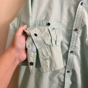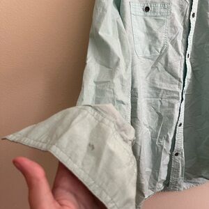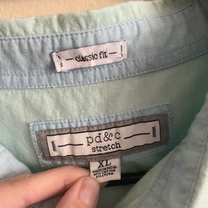PD&C brand men’s button size XL. Shirt is a Stretch and Classic Fit. In good used condition has a small stain on one wrist. Has all buttons and buttons at the wrists.