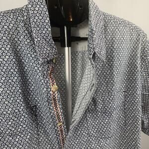 This pre-owned PD&C short sleeve button-down shirt is a stylish addition to any wardrobe! The classic navy and white color combination makes it versatile for various occasions. Perfect for a casual day out or a relaxed evening.
