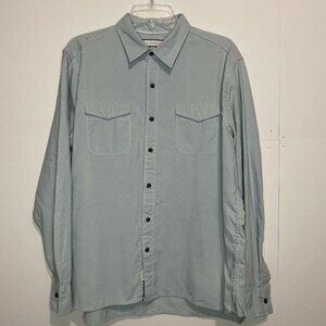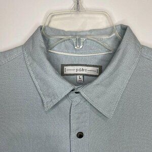PD&C Large Long Sleeve Casual Button Down Shirt Light Blue Tiny Design EUC.