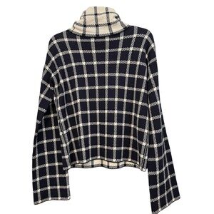 🖤 PDR Italy Wool Grid Turtleneck Sweater Navy Cream, Size 0