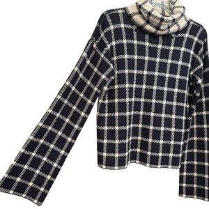 🖤 PDR Italy Wool Grid Turtleneck Sweater Navy Cream, Size 0
