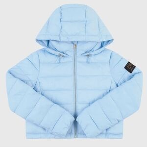 Made from nylon this padded jacket features a drawstring hood and convenient side pockets,