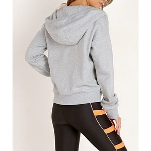 Size Small. Excellent preowned condition. No noticeable flaws. Cozy meets cool with the Elite Two hoodie, an everyday Grey Marl sweat detailed with logo-printed zipper front and embroidered stars above the ribbed cuffs. Offering lightweight warmth for all seasons with a soft brushed fleece interior, this slightly cropped zip-up sweat is designed with comfort and wearability in mind.