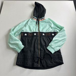PE NATION X H&M Windbreaker Track Jacket Mint Green Hooded Rain Women Size Small