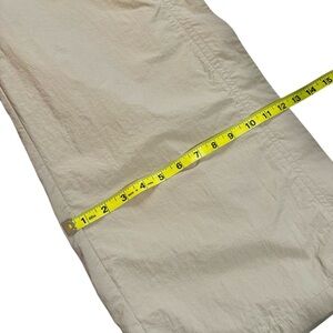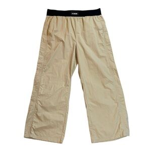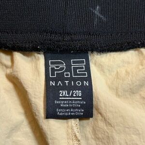 P.E Nation Nylon Track Pants, 2XL (PE-ME04). Awesome pants super light weight and wide leg. 100% Nylon with an Elastic waistband. Great condition overall, one small black dot on back of pant leg. Please review all photos for overall condition and measurements.