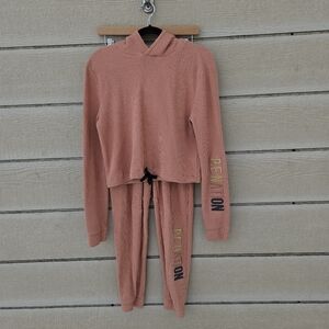 PE Nation Rebound waffle knit hoodie and joggers set in coral XS