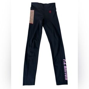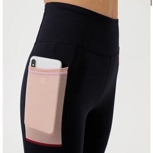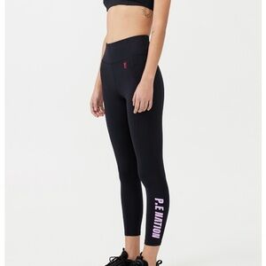 P.E Nation Salto Legging Black with mesh pocket and pink logo