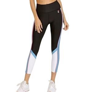 PE Nation The Backboard High Rise Legging in Black Sky White Size Small Excellent condition, like new Color: Black sky white High rise Reinforced waistband Contrast panels on side and lower leg Contrast red piping Embroidered logo at hip Crop length 75% polyester/25% elastane; hand wash Measures approximately ~ - Waist: 12.5” - Rise: 10” - Inseam: 25” Tags: colorblock, athletic, athleisure, sporty, multicolor, gym, training, fitness, workout