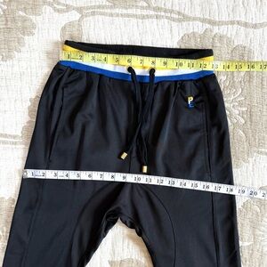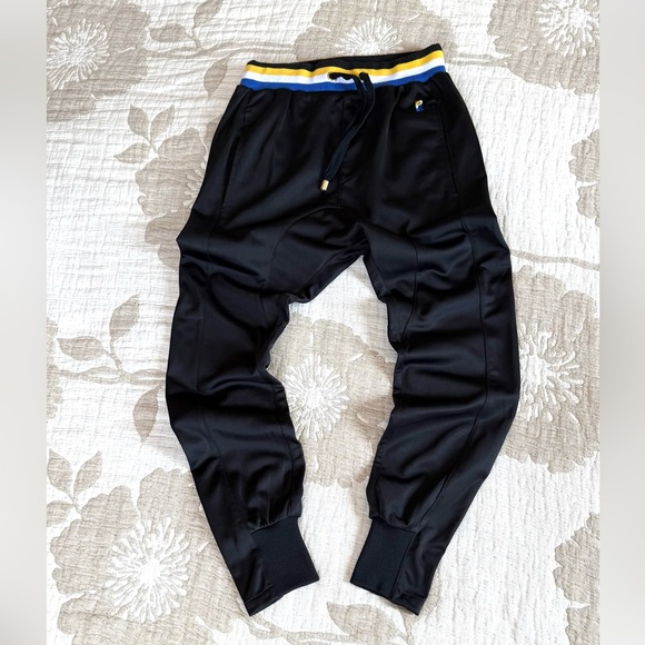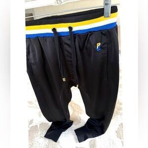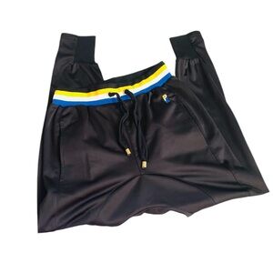 P.E Nation Women's Joggers Pants Size XS Black 100% polyester Great Condition Used Only Once No Flaws No Stains. Two side pockets and 2 back pockets. Waistband with a colored band. Drawstring waist for adjustable fit. The exterior of the fabric is soft and slightly shiny, similar to satin.