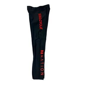 PE Nation x SoulCycle collab black red spell out logo leggings. Women's size Small