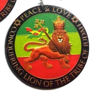 PEACE LOVE Lion of Judah Medium Statement Dangle Wood Earrings