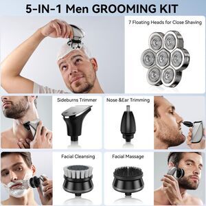 5-in-1 Shaver Head Kit: The Head shaver comes with 5 replacement heads: hair clipper, nose hair trimmer, massage brush, and cleaning brush.