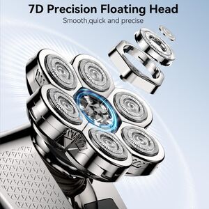 7D Floating Head shaver: The flexible 7D precision rotary blades effortlessly glide along your facial contours, adapting to various curves and angles to deliver an exceptionally close and comfortable shaving experience. With increased shaving coverage, say goodbye to missed spots and uneven results, while saving shaving time.