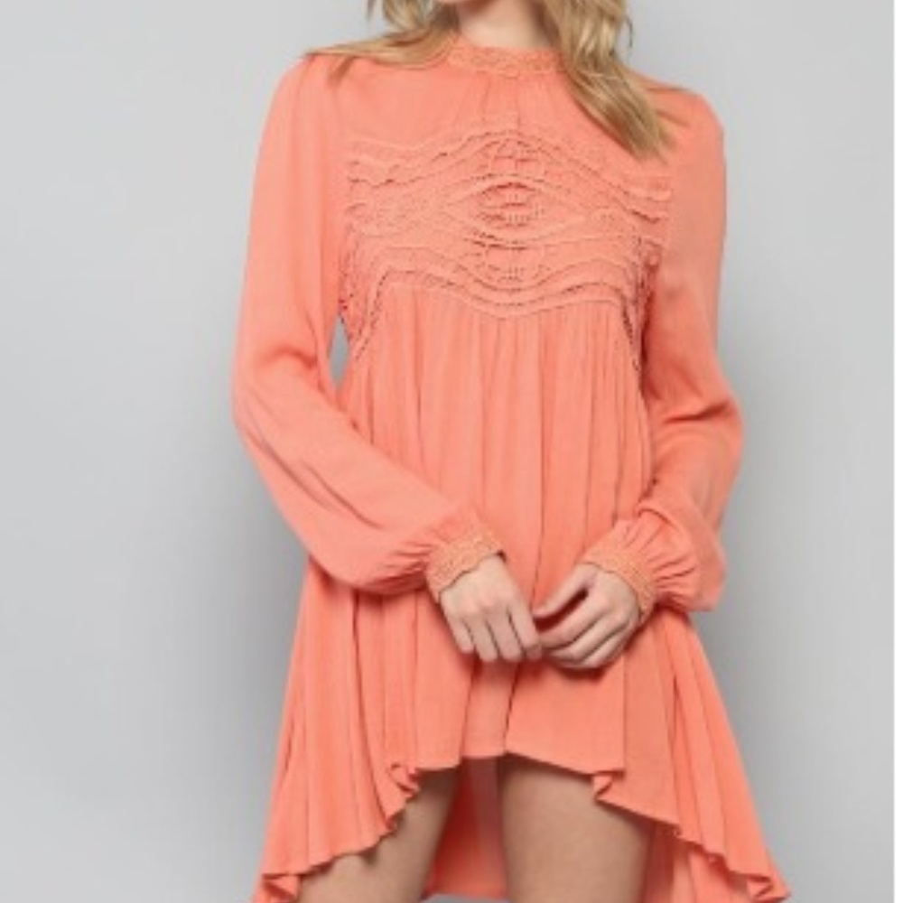 Peach dress. It is on the short side. Could be a tunic for a taller person.