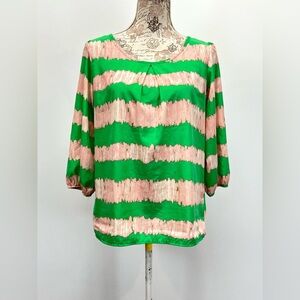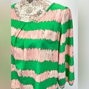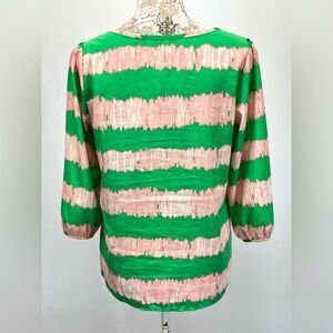 PEACH LOVE CREAM California Green and Pink abstract print 3/4 sleeve top size M