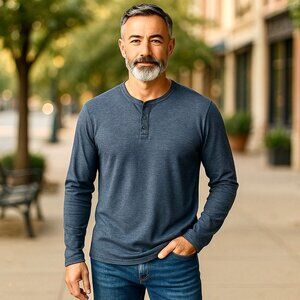 PEACOCKS Ltd from UK Gray Long Sleeve Top Henley Mens XL