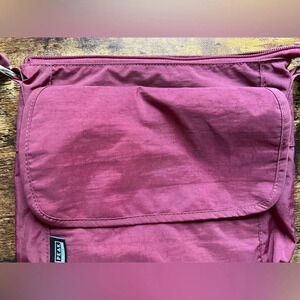 PEAK gear woman’s lightweight purse. The front has a large flap pocket with magnetic closure and a zippered pocket. The back has a large pocket with magnetic shoe closure. The tan interior has 2- slide in pickers and 1 large zippered closure pocket. 1.5” wide adjustable strap. This is a Return to Me pocketbook, it has a tag enclosed to activate. Lifetime recovery. Anywhere in the world. Never used. RFID travel bag. Brand new. NWT.