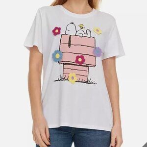 PEANUTS Character Tee w/ Crochet Flowers NWT