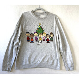PEANUTS Christmas Pullover Sweatshirt Womens Size L Gray Graphic Print Fleece