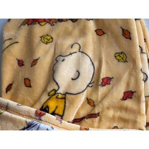 PEANUTS SNOOPY Charlie Brown Plush Velvet Soft THROW Blanket Twin 50”x70” Autumn Fall Leaves Yellow NEW