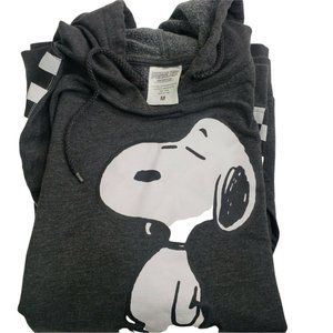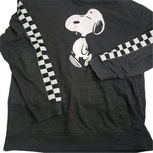 PEANUTS SNOOPY M Pullover Hoodie Arm Checker Detail Kangaroo Pocket EUC