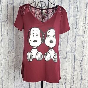 PEANUTS Snoopy Maroon Lace Shirt Medium