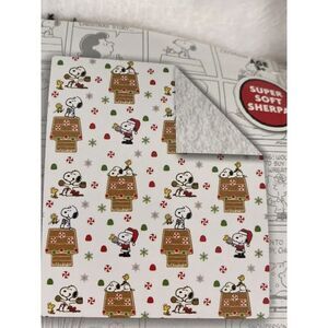PEANUTS Sherpa Backed Throw Blanket Christmas Tree Dog House Snoopy Charlie Brown Schroeder Marcie Sally Linus Woodstock Peppermint Patty 50 X 60” Holiday Gingerbread Dog House Snowflakes NEW