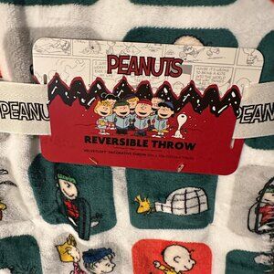 PEANUTS Throw Blanket 50x70” Snoopy & The Gang Christmas Windowed Snow Fun NWT