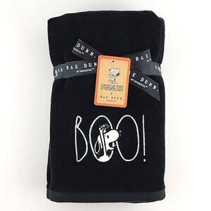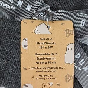 New with tags, PEANUTS X Rae Dunn set of 2 black hand towels with white BOO! and Snoopy embroidered, 100% cotton.