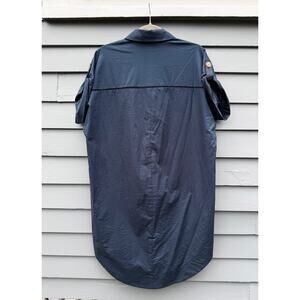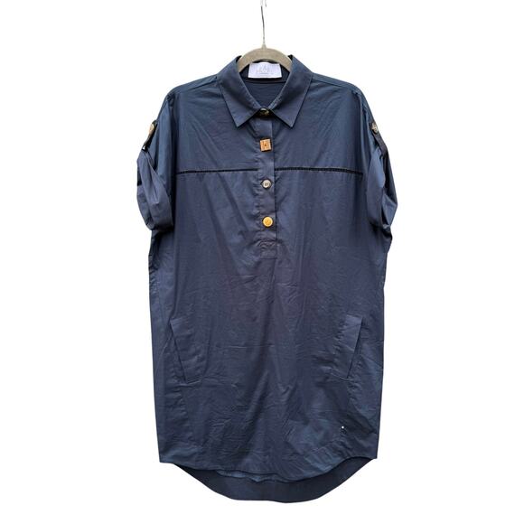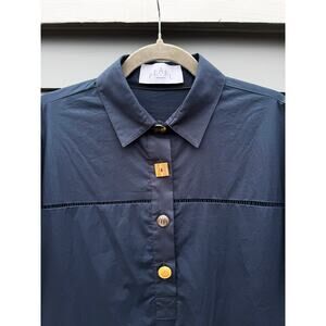 PEARL BY LELA ROSE Navy Cotton Poplin Henley Mini Dress Small S