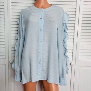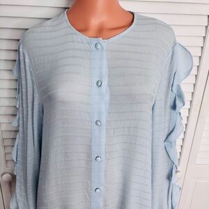 PEARL BY LELA ROSE Striped Crepe Ruffle Detail Blouse Size 14