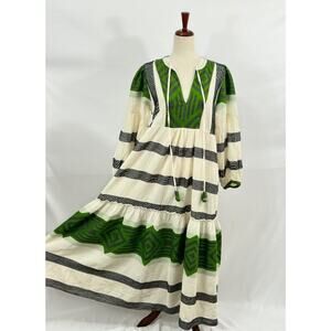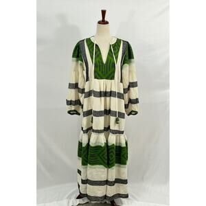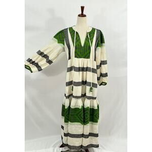 PEARL & CAVIAR Sz S/M Green Ivory Cotton Zakar Maxi Dress NWT