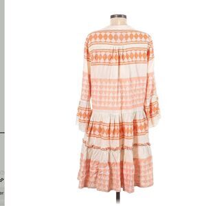 PEARL & CAVIAR Zakar Cotton 3/4 Sleeve Peach and Cream Greek Santorini Dress