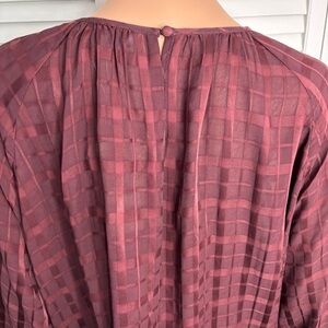 Details: Pearl by Lela Rose Wine Plaid Crepe Full Sleeve Blouse