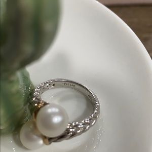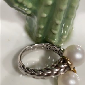 Alwand Vahan sterling silver .925 and 14K yellow gold double cultured pearl bypass ring in a size 6 Pearls are approx. 8mm.