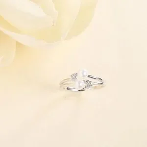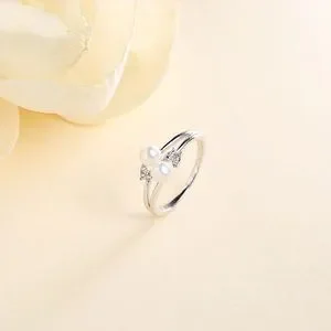 Made from 925 sterling silver adjustable ring. Imitation pearls but they are as pretty as the real ones.