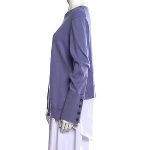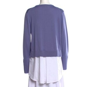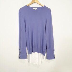 Pearl by Lela Rose Purple White 100% Wool Poplin Combo Sweater