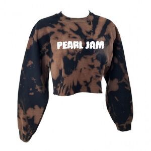 PEARL JAM Acid Wash, Distressed "Cropped" Crop Top Long Sleeve Crewneck Sweatshirt. Size: Small, Medium, Large and XL