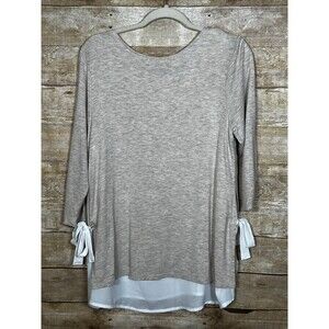 ROUND NECK LINE. 3/4 SLEEVE. LINED. 2FER STYLE. FLAY AWAY TIE CLOSURE SIDES. POPOVER ON AND OFF. NO FLAWS. SEE PICS FOR MATERIAL TAG. OFFERS WELCOME.