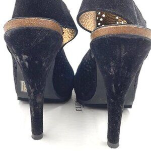 4" Heel (Heels have a distressed look on the suede. I am unsure if this was intentional or not, as these shoes have never been worn, see pic)