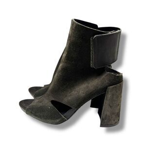 PEDRO GARCIA Suede Dark Olive Green Open Toe Sandals Shoes Heels EU 37.5 US 7.5