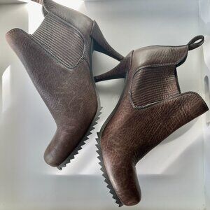 Pedro Garcia 'YOAD' Leather Ankle Chelsea Heel Platform Bootie, Brown Pepple - Excellent Condition | Women's Size: 39 EU, 8.5 US | Made in Spain | Brown, Rubber Trim, Round-Toes, Platform, Heels: 4.25"