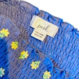 PEEK Baby Girl’s Floral Embroidered Spaghetti Purple Dress with Smocked Chest