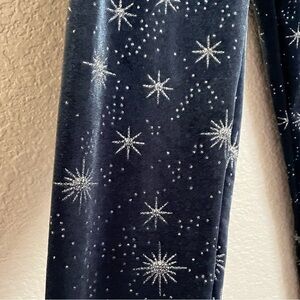 PEEK Girl's Glitter Print Velour Leggings 12 Blue Silver