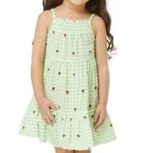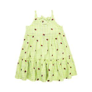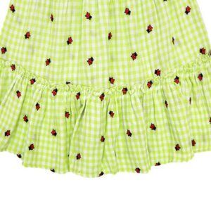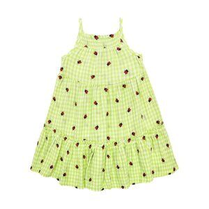 Sweeten her sunny-day vibe in this airy, tiered sundress covered in lime-hued gingham checks and playful, embroidered ladybugs.