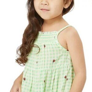 PEEK Ladybug Schiffli Dress Lime Gingham 10 Embroidered Smocked Sundress Tiered