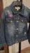 PRE-LOVED PEEK LITTLE GIRL FLORAL & BUTTERFLY EMBROIDERED PRETTY DENIM SPRING JACKET. TWO UPPER FUNCTIONAL POCKETS ON THE CHEST AREA. SNAP CLOSURES.