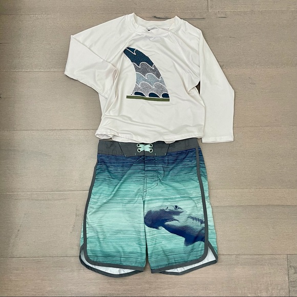 Peek long sleeve rashguard and Art Class swim trunk. Selling as a set. Rashguard is easy to put on and take off as it is not slim fit.